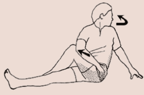 Exercice 2 — Étirement assis en torsion Assis sur le sol, jambes allongées. Fléchissez le genou droit et posez le pied droit à l’extérieur du genou gauche. Placez le coude gauche contre le genou droit et tournez doucement le buste vers la droite. Maintenez 20 à 30 secondes. Répétez ensuite de l’autre côté.