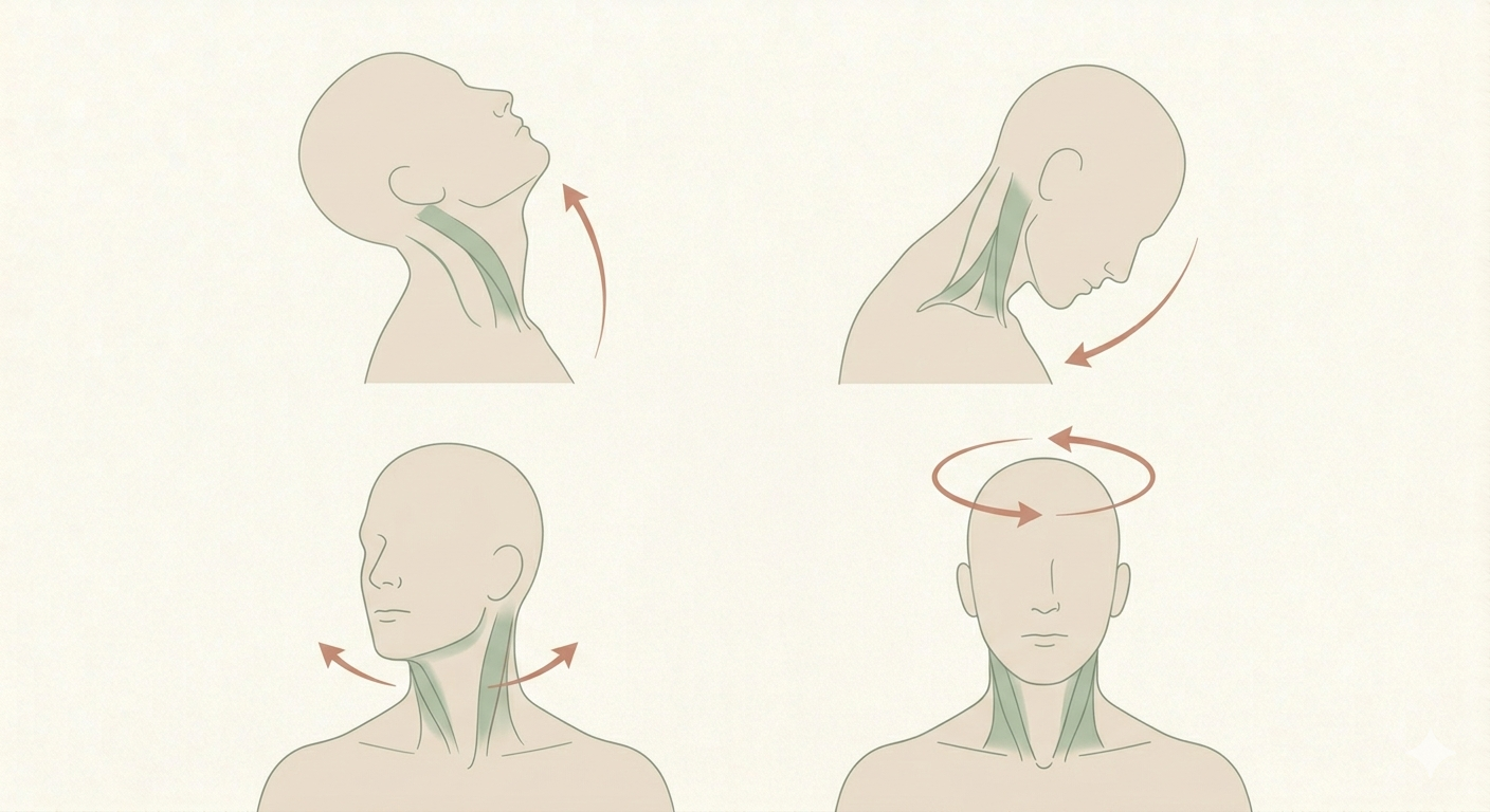 Le rachis cervical est la région la plus mobile de la colonne — il permet ainsi la flexion, l’extension, les inclinaisons latérales et les rotations. Lorsque les articulations cervicales se bloquent, les muscles compensent en se contracturant davantage. En conséquence, les douleurs cervicales s’aggravent, les maux de tête apparaissent et la mobilité diminue progressivement. Une mobilisation douce et régulière lubrifie les articulations et maintient ainsi leur amplitude naturelle.